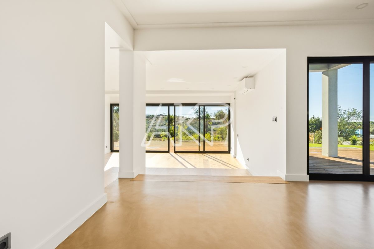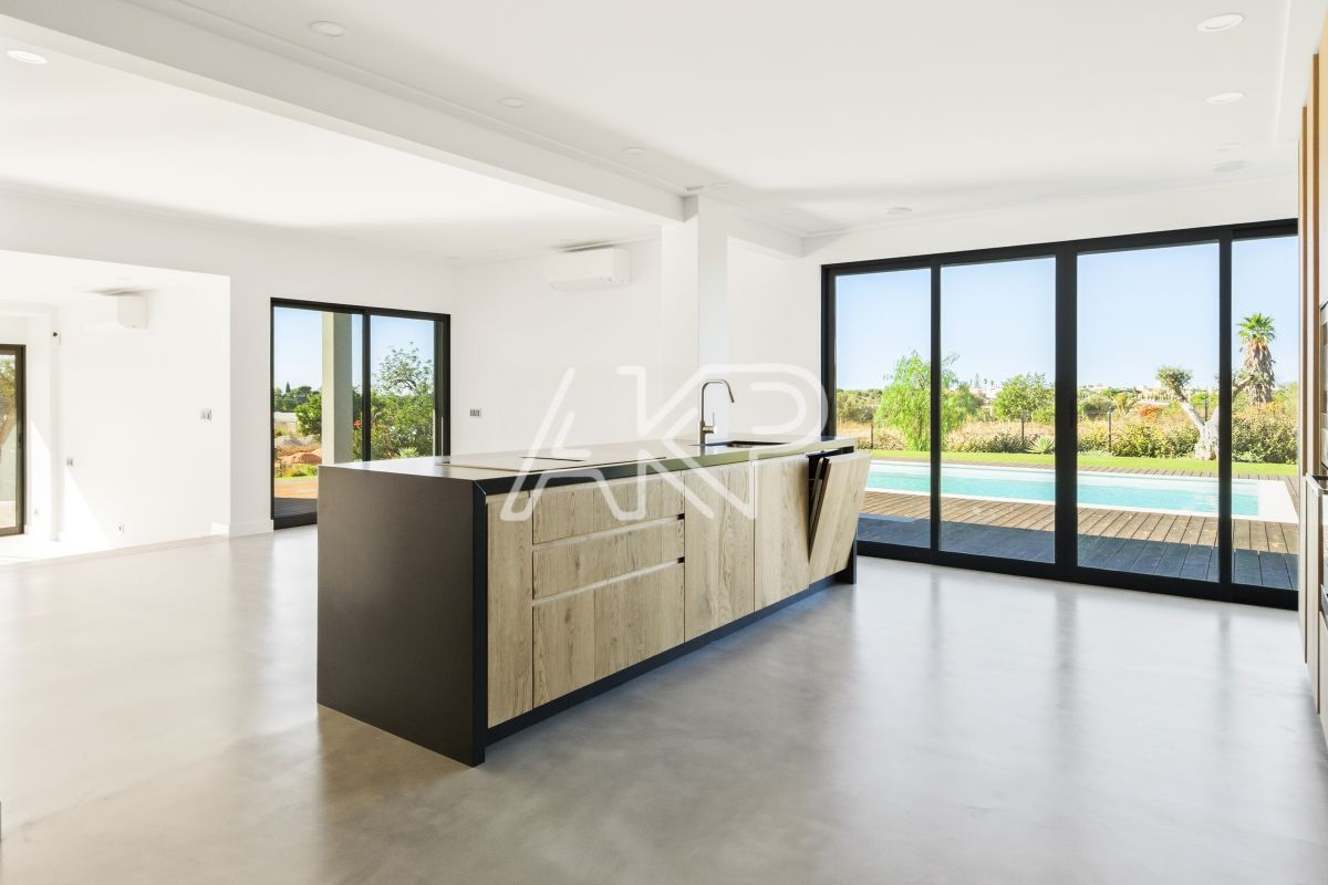 Finished to an impressively high modern standard throughout, the property combines clean architectural lines with bright, open-plan interiors and an abundance of natural light. The spacious living and dining area opens directly to a south-facing terrace and pool, while the elevated position provides distant sea and countryside views. The kitchen is sleek and fully equipped, designed for both family living and entertaining. All bedrooms are well-proportioned, including a large en-suite master suite with private terrace. Additional highlights include a converted garage that would make a great games room or playroom, utility room, office/study, integrated smart-home systems, electric gates, spacious and practical calçada parking area, landscaped gardens that are maturing nicely, and excellent energy efficiency (rated B). Outside, the landscaped gardens and private pool area offer plenty of space for relaxation and outdoor dining. With ample parking and a tranquil setting just minutes from the city of Almancil, as well as the popular seaside market town of Quarteira this villa makes an ideal permanent residence or a fantastic rental investment. With so much open space to play with further features and benefits could easily be added, such as exterior covered areas (stretched canvass shades, pergolas, bbq area, dedicated exterior lounging and dining areas, etc..) GENERAL; Within 5 minutes drive of an abundance of restaurants (from super-high-end through to family friendly great value favourites). Numerous golf course, the famous Algarvean blue flag beaches, padel and tennis centres, equestrian centres, as well as various shops and amenities can also be found within an easy 5-minute drive. All this within only 30 minutes drive of Faro International Airport Property ID: 467 Energy Rating: B